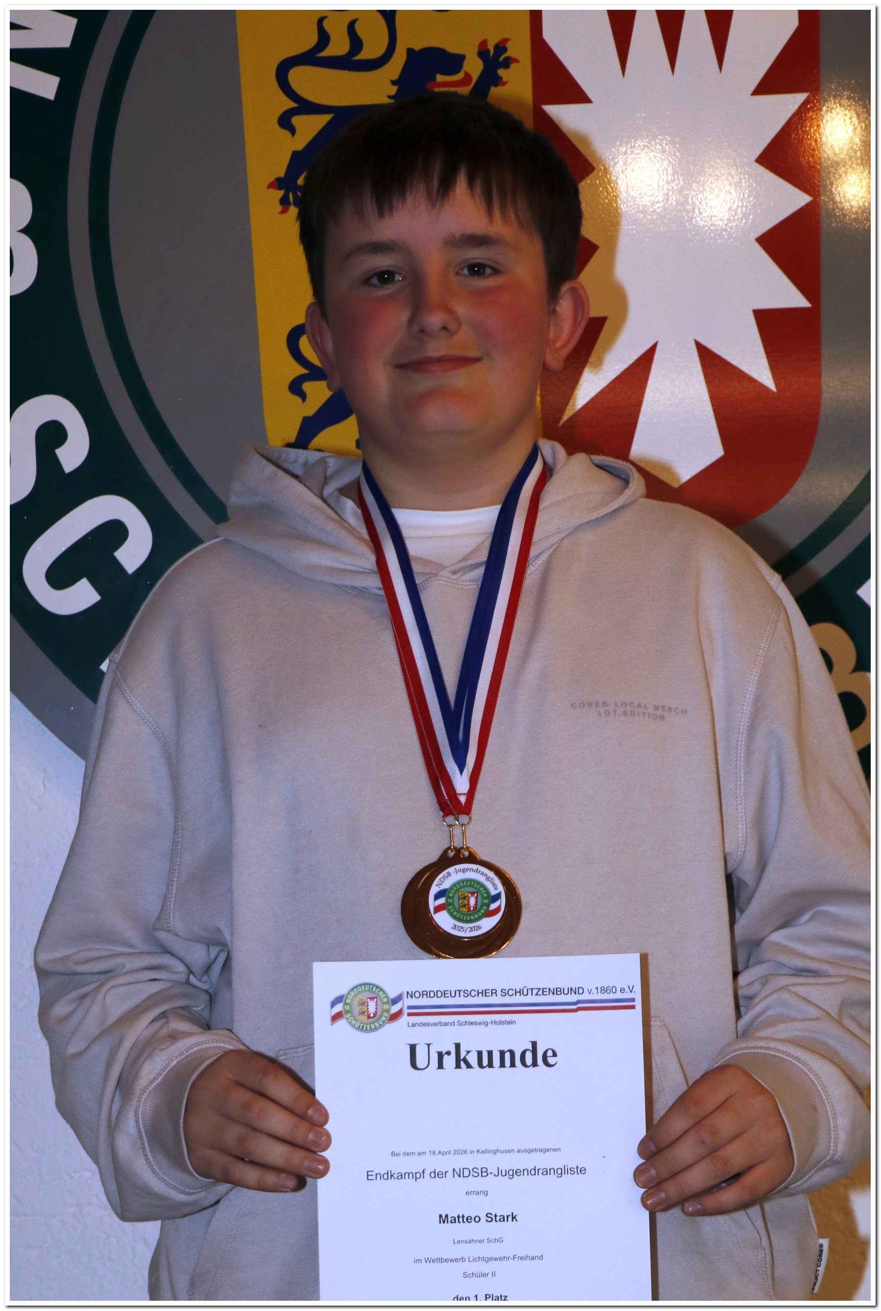 Tjark Wolfgang Buchwald (SchV Neumünster) bewies sein Können vor allem auf internationaler Ebene. Er siegte mit der Luftpistole bei der ISAS in Dortmund und war zudem beim deutsch-französischen Jugendaustausch in Suhl sowohl im Einzel als auch im Mix-Team erfolgreich. Aufgrund seines Trainingsfleißes und seiner sportlichen Weiterentwicklung wurde Tjark Wolfgang Buchwald in den DSB-Nachwuchskader NK 1 aufgenommen.