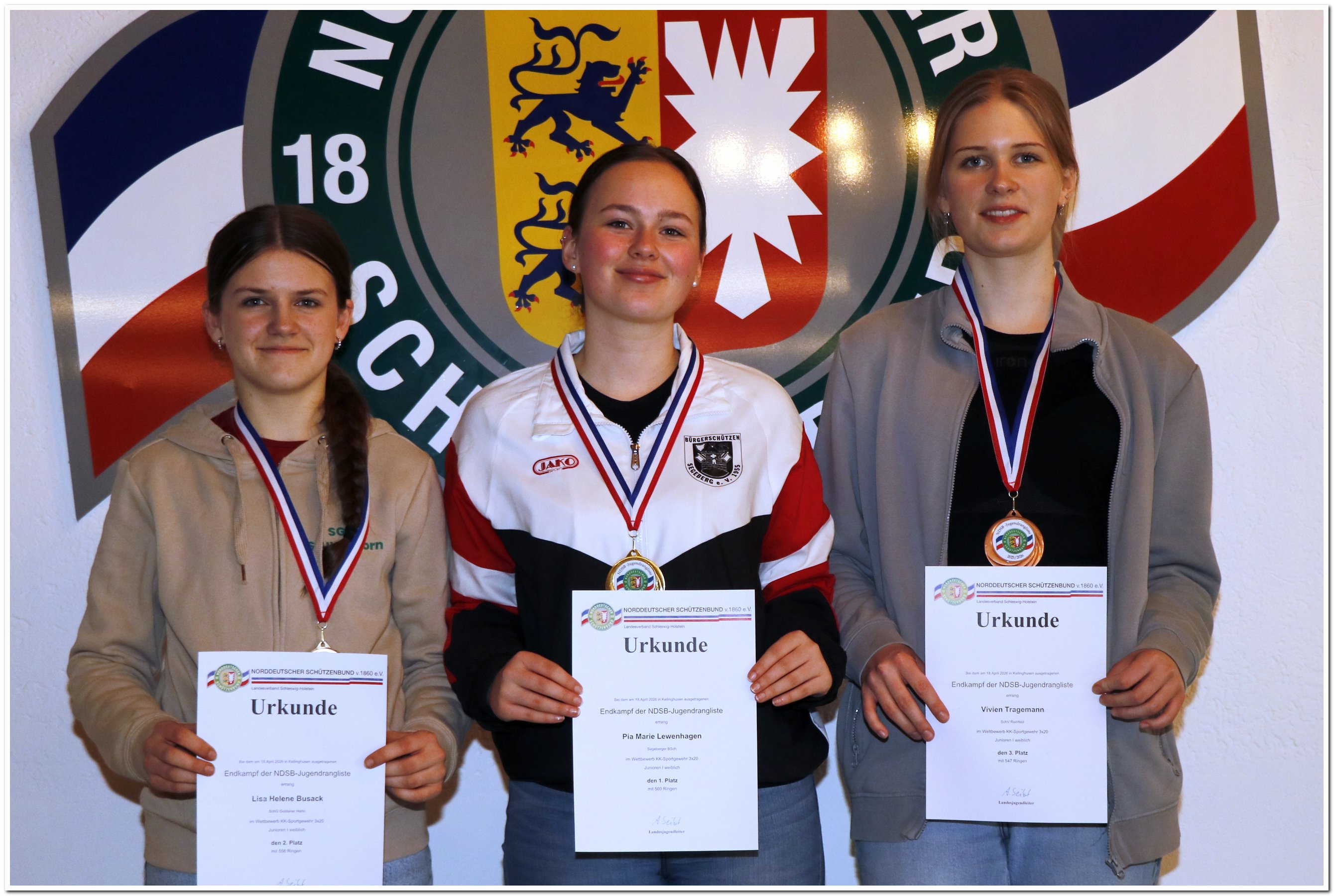 In der Juniorenklasse verteidigte Lea Sophie Beneke von den Lübecker Sportschützen ihren Titel mit einer hervorragenden Leistung von 409,7 Ringen.